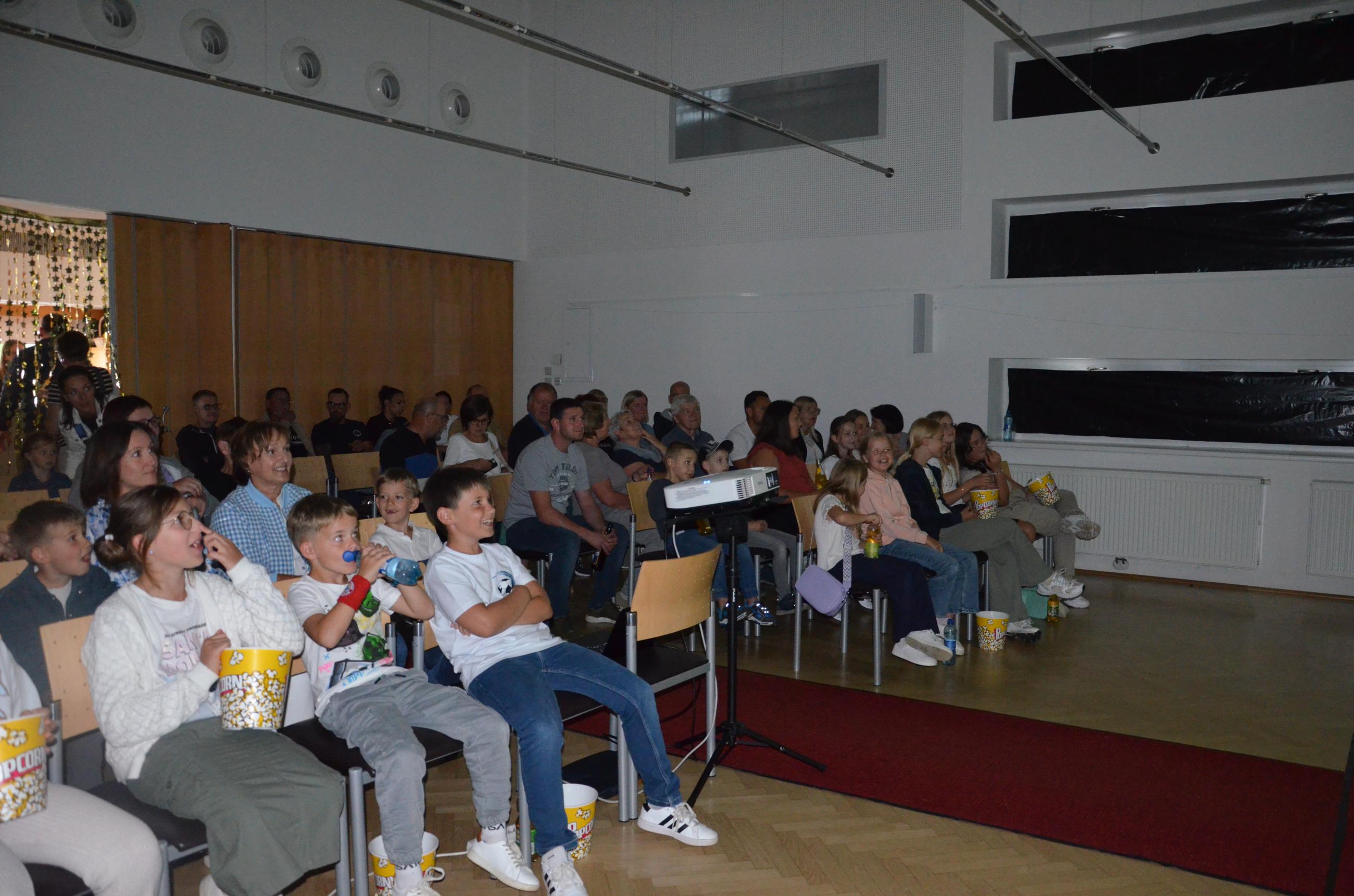 Dazu wurde der Pfarrsaal in einen Kinosaal umgewandelt, abgeklebte Fenster, frisches Popcorn und ein roter Teppich machten das Erlebnis perfekt!